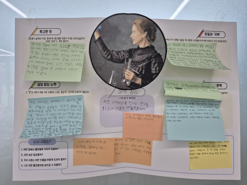 1차시는 『격몽요결』 중 입지에 대하여 공부하고 다양한 영역의 롤모델에게서 배워야 할 모습을 모둠별 활동지로 작성해 보았습니다.