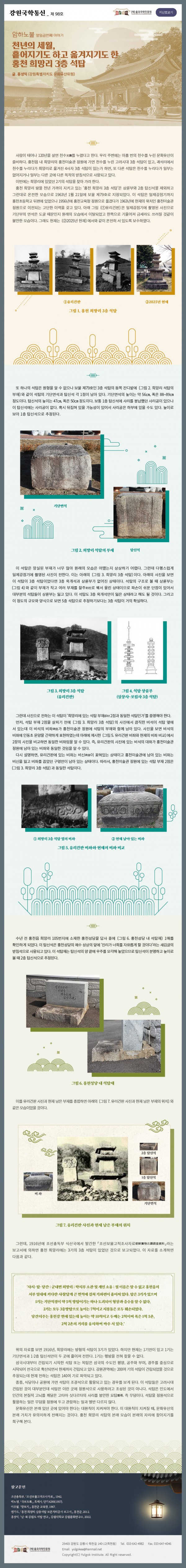 [암하노불] 17. 천년의 세월, 흩어지기도 하고 옮겨지기도 한 홍천 희망리 3층 석탑 페이지 정보 작성자 : 율곡연구원 | 조회수 : 66회 작성일25-09-15 09:07 본문 감사합니다. 목록